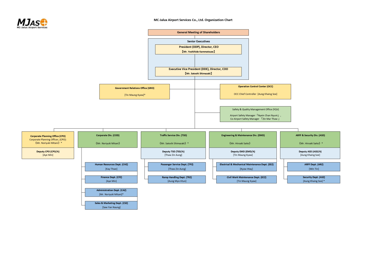 MC-Jalux Airport Services Co., Ltd (MJAS) was founded in conjunction with the two Japanese companies of Mitsubishi Corporation (MC) and JALUX Inc. (JALUX); and one Myanmar’s SPA, affiliated group-company of Yoma Development Group Limited, a wholly-owned subsidiary of Yoma Strategic Holdings Ltd. (YOMA). MC and JALUX each holds 45.5% of shares, while YOMA holds the remaining 9%.